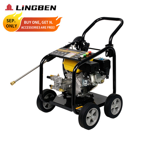 LINGBEN 170C 자동차/정원/목장 세탁기 170bar 상업용 고압 청소기 농장 청소 기계 가솔린 고압 세척기